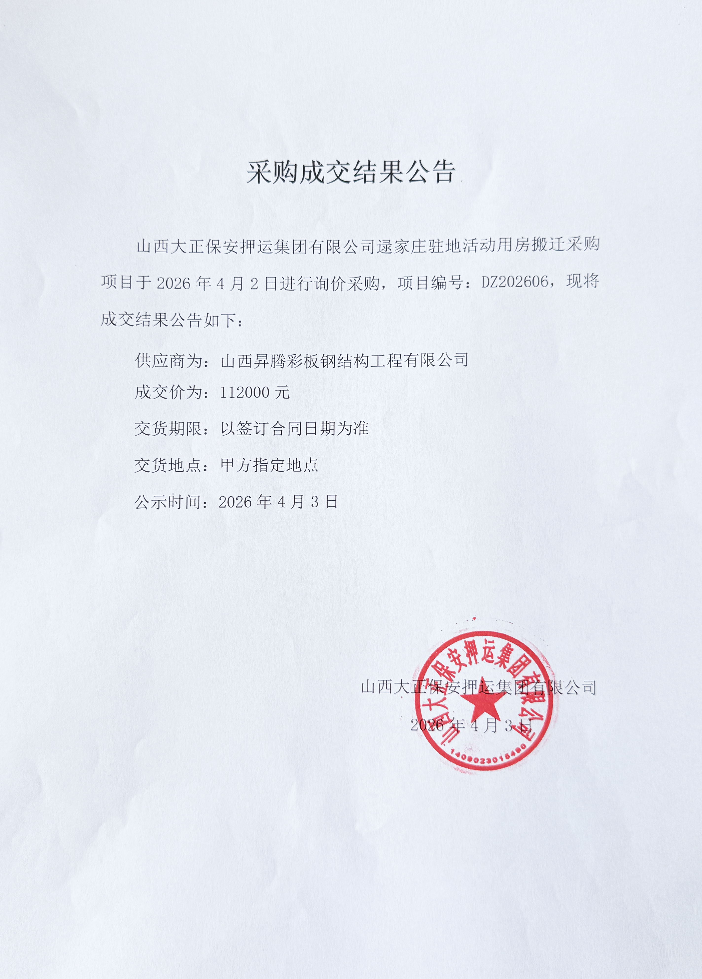 成交结果公示